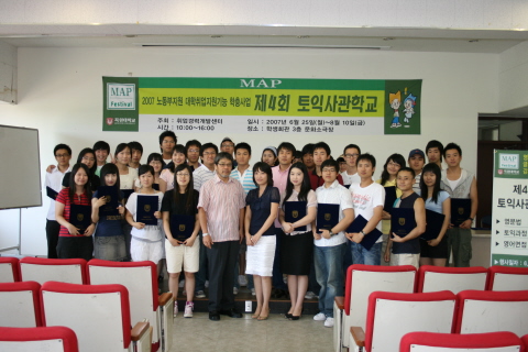 취업경력개발센터 주관 제4회 토익사관학교 수료식에 지난 14일(화) 문화소극장에서 있었습니다.