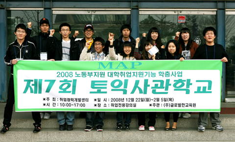올 겨울 7회째를 맞은 토익사관학교는 지난 2008년 12월 22일부터 2009년 2월 5일까지 6주간 하루 6시간씩 총 180시간 동안 진행되었다. 매주 금요일은 원어민 강사와 함께하는 영어회화 수업도 진행하였다.