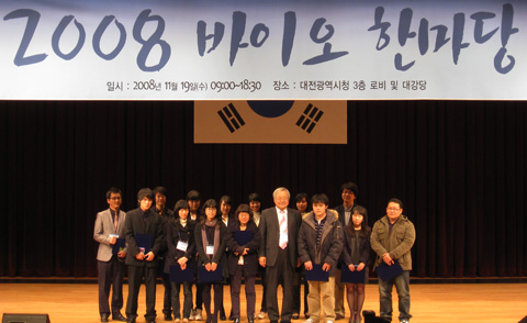 생명과학부 이혜란(미생물생태학연구실, 3학년) 학생이 지난 11월 19일(수) 대전광역시청 3층 대강당에서 열린 NURI사업 대덕벨리바이오산업인력양성사업단 주최 ‘2008 바이오 한마당’ 심포지움에서 우수논문상을 수상하였다.