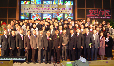 목원대학교 신학과 78학번 입학동기, 82학번 졸업동기모임인 「782 동기회」는 20일(목) 목원대 채플에서 입학 30주년을 기념하여 은사인 이군호 전 총장과 윤신형 교수를 모시고 신학대학 재학생들과 함께 Home Coming Day 기념예배 및 장학금 수여식을 가졌다.