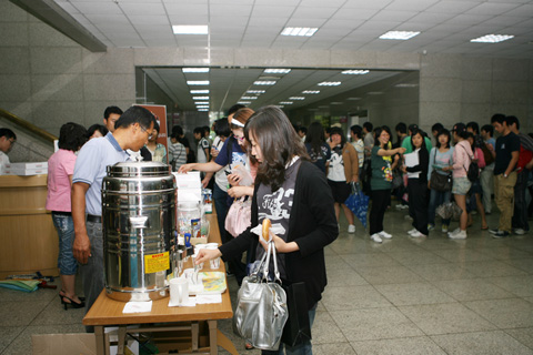 아침에 빵과 우유 나눠주기 행사는 3년전 학술정보처에서 처음 시작한 이래 지난해부터 노동조합, 교수협의회 및 총학생회가 힘을 보태며 저녁까지 확대해 그 규모와 의미가 한층 더하고 있다.