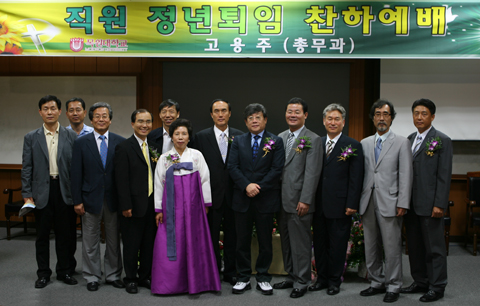 이날 정년퇴임을 맞은 고용주 선생은 지난 1981년 목원대학교에 부임하여 27년여 동안 관리과 및 총무과에 근무하며 대학발전을 위해 기여 했고, 교육과학기술부 장관으로부터 모범퇴직직원 표창장을 받았다.