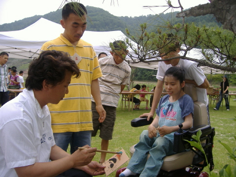 ""동양화 실기""를 수강하는 대전 목원대 미술교육과 학생 20여명은 9일 오전 충남 공주시 ""소망공동체""를 방문, 이 곳에서 생활하고 있는 중중장애우 50여명과 그림을 매개로 돈독한 정을 나눴습니다.