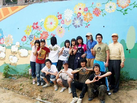 학생들은 양로원에 계신 여러 어르신들에게 조금이나마 따뜻함을 느끼게 해드리기 위해 밝은 색깔의 꽃들과 양떼 풍차와 같은 자연물로 그림의 주제를 정하고 높은 곳은 사다리를 이용하여 벽화작업을 하였다.