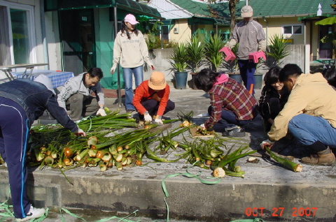 60여명이 참석한 삼보기도원에서 남자직원들은 60여평의 소 막사청소와 퇴비야적 작업을, 여직원들과 가족들은 토란을 베어 나르고 규격에 맞추어 다시 잘라 햇빛에 말리는 작업을 했습니다.