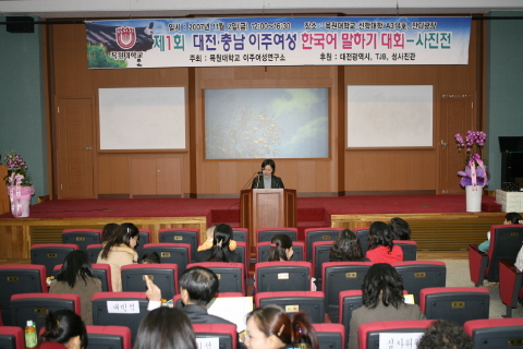 오늘 대회에는 목원대 이요한 총장, 가기산 서구청장, 진동규 유성구청장을 비롯한 교내외 인사와 이주여성 가족들이 참가한 가운데 21명의 이주여성이 말하기 대회에 참가해 각자의 한국어 실력을 겨루었습니다.