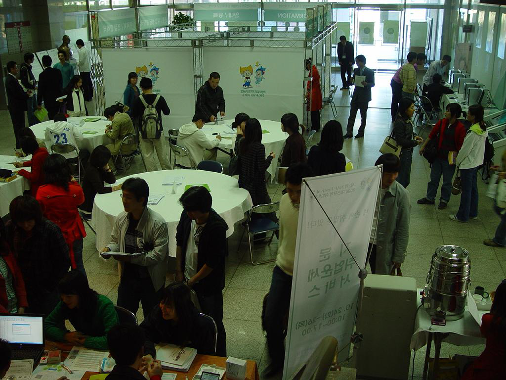 행사 마지막 날인 26일에는 채용의 절차를 간소화한 2006년 대전지역 취업박람회가 중앙도서관 1층에서 열렸습니다. 입사서류를 지참하여 현장 면접에 응하고 채용으로 이어지는 이번 취업박람회에는 20여개의 기업체가 참여하였습니다.