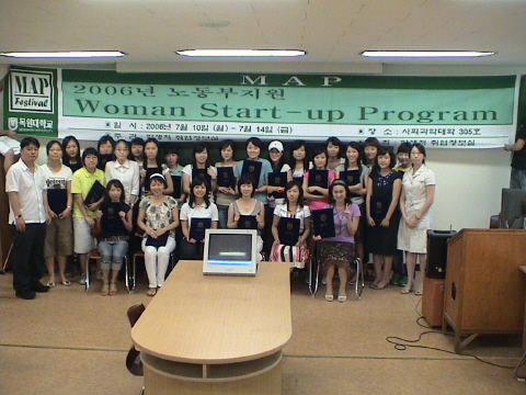 2006년 7월 14일(금) 사회과학대학 305호 강의실에서 ""Woman START-UP Program"" 수료식을 가졌습니다.