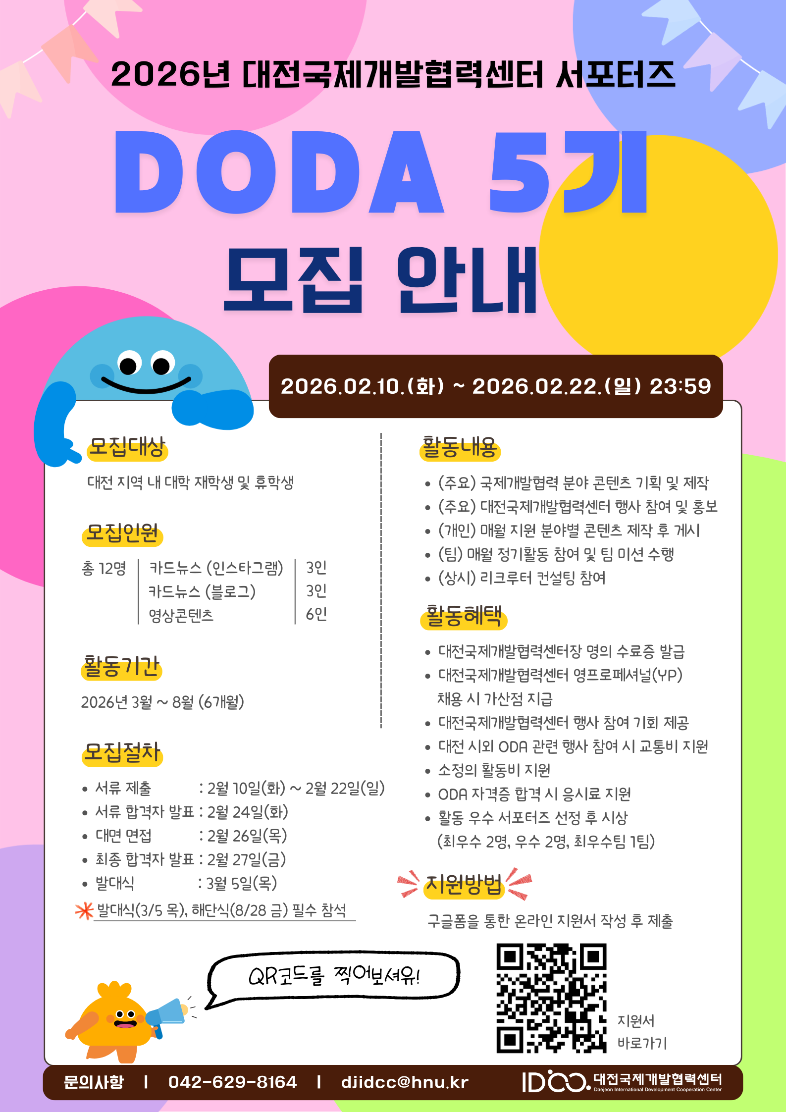 ◦ 서포터즈(DODA) 5기 발대식 : 2026년 03월 05일(목)