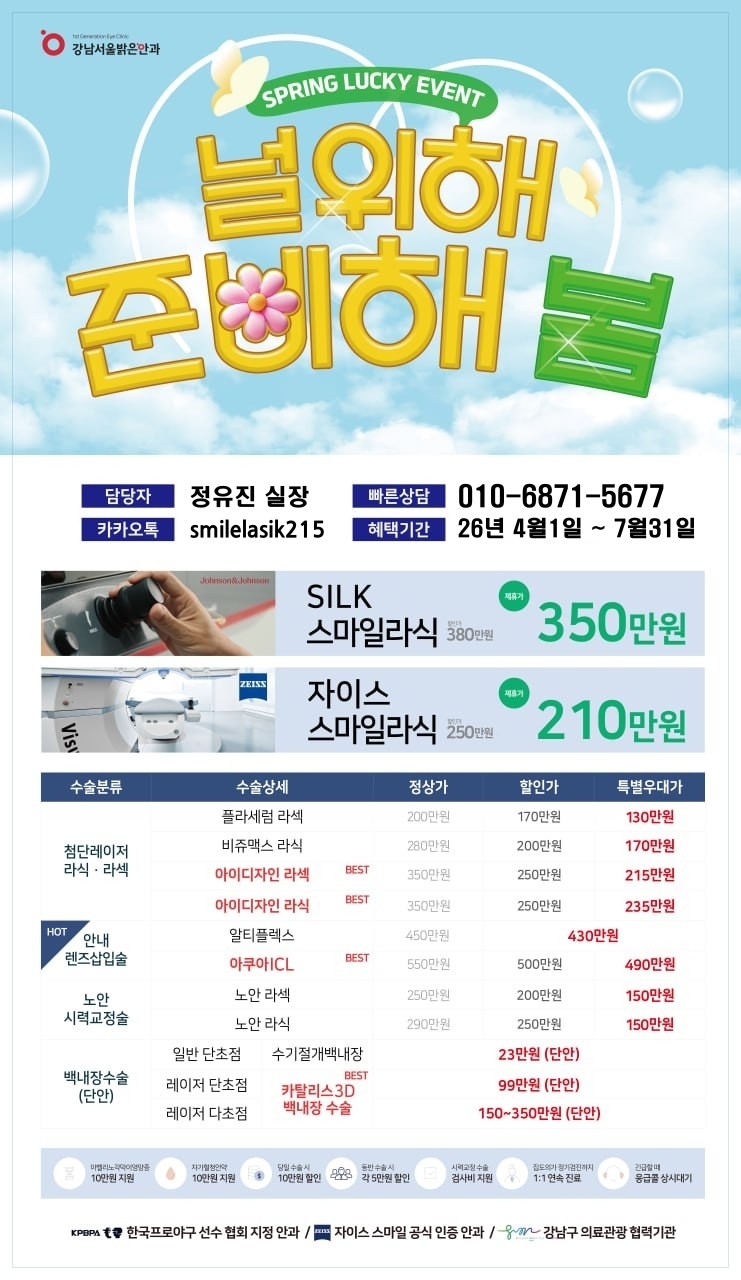 ★문의/상담/예약 담당자 : 정유진 실장 0 1 0 - 6 8 7 1 - 5 6 7 7, 카카오 ID : smilelasik215