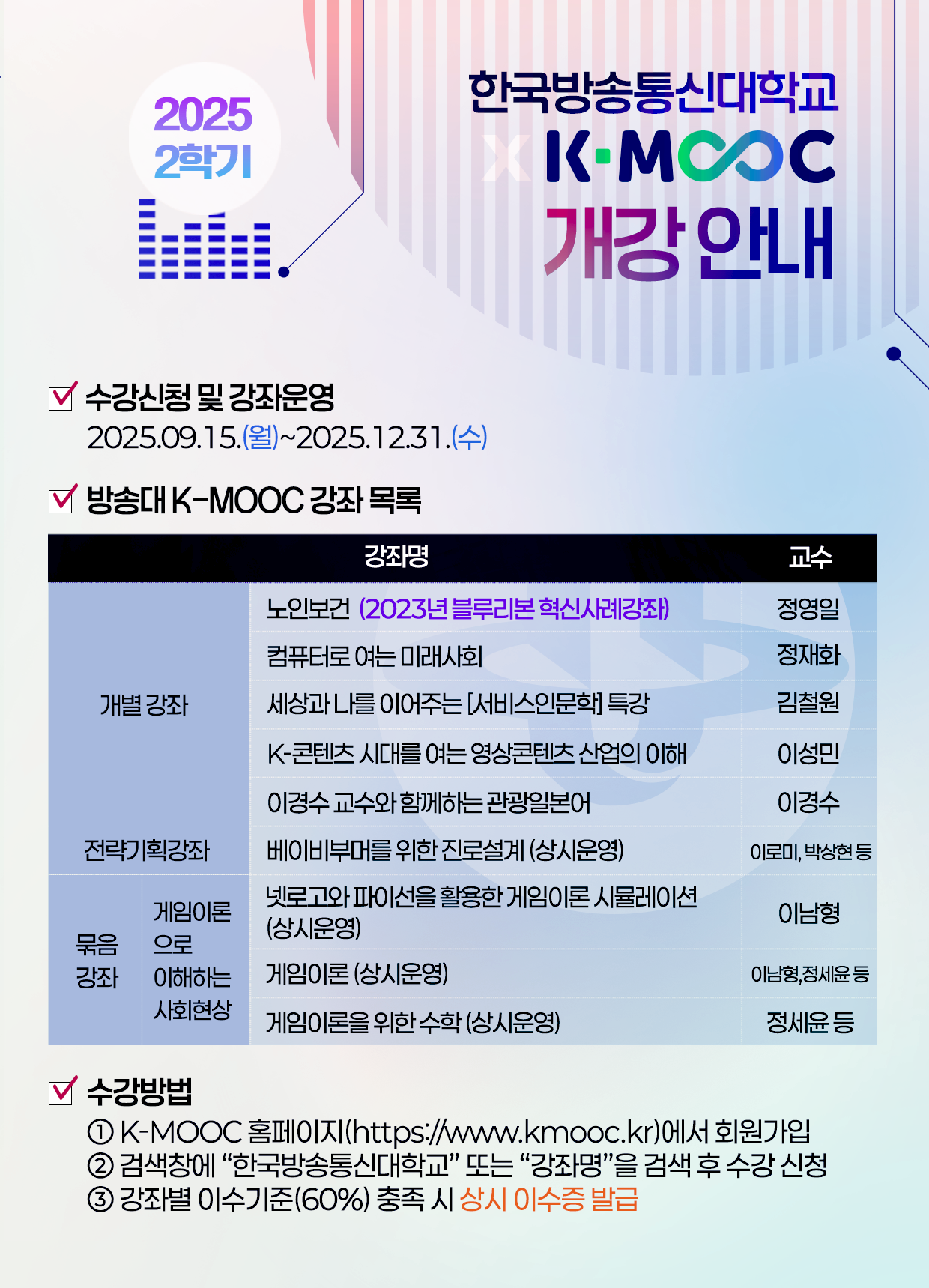 1) 참여대상: 한국방송통신대학교 K-MOOC 강좌 수강신청자