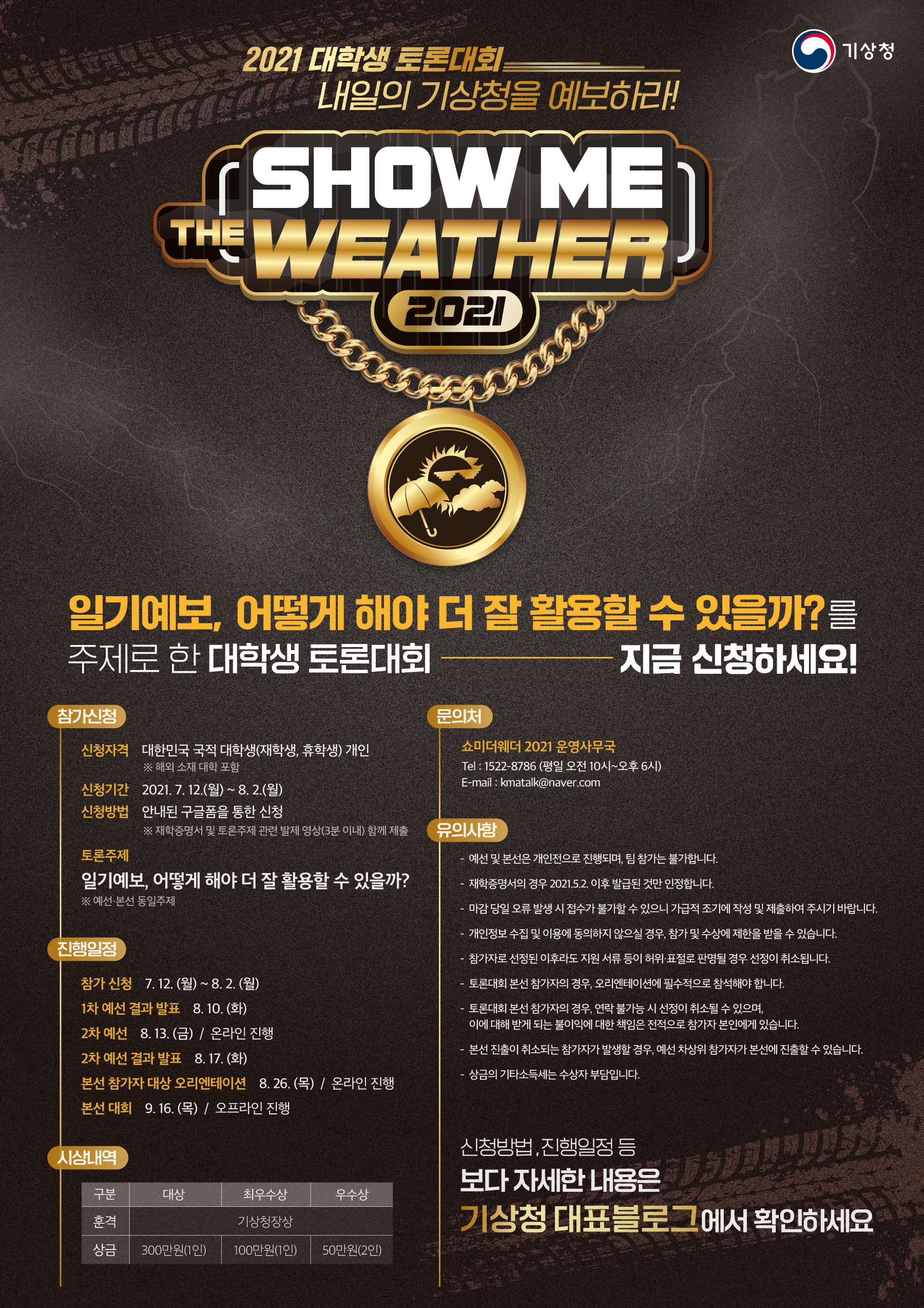 [기상청] 대학생 토론대회 "쇼미더웨더 2021" (~8/2)