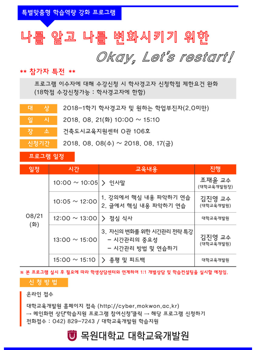 복음적 목회자, 민족복음화,대학교육개발원에서는 2018 특별맞춤형 학습역량 강화프로그램 학사경고자 학습동기유발 워크숍을 개최하오니
