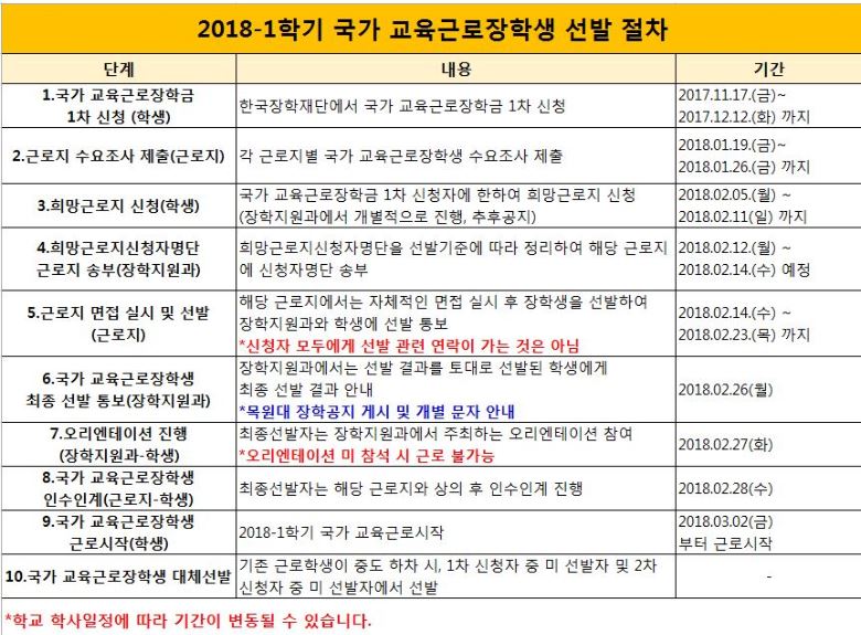 ※한국장학재단의 일정과, 학사일정에 따라 변동될 수 있음