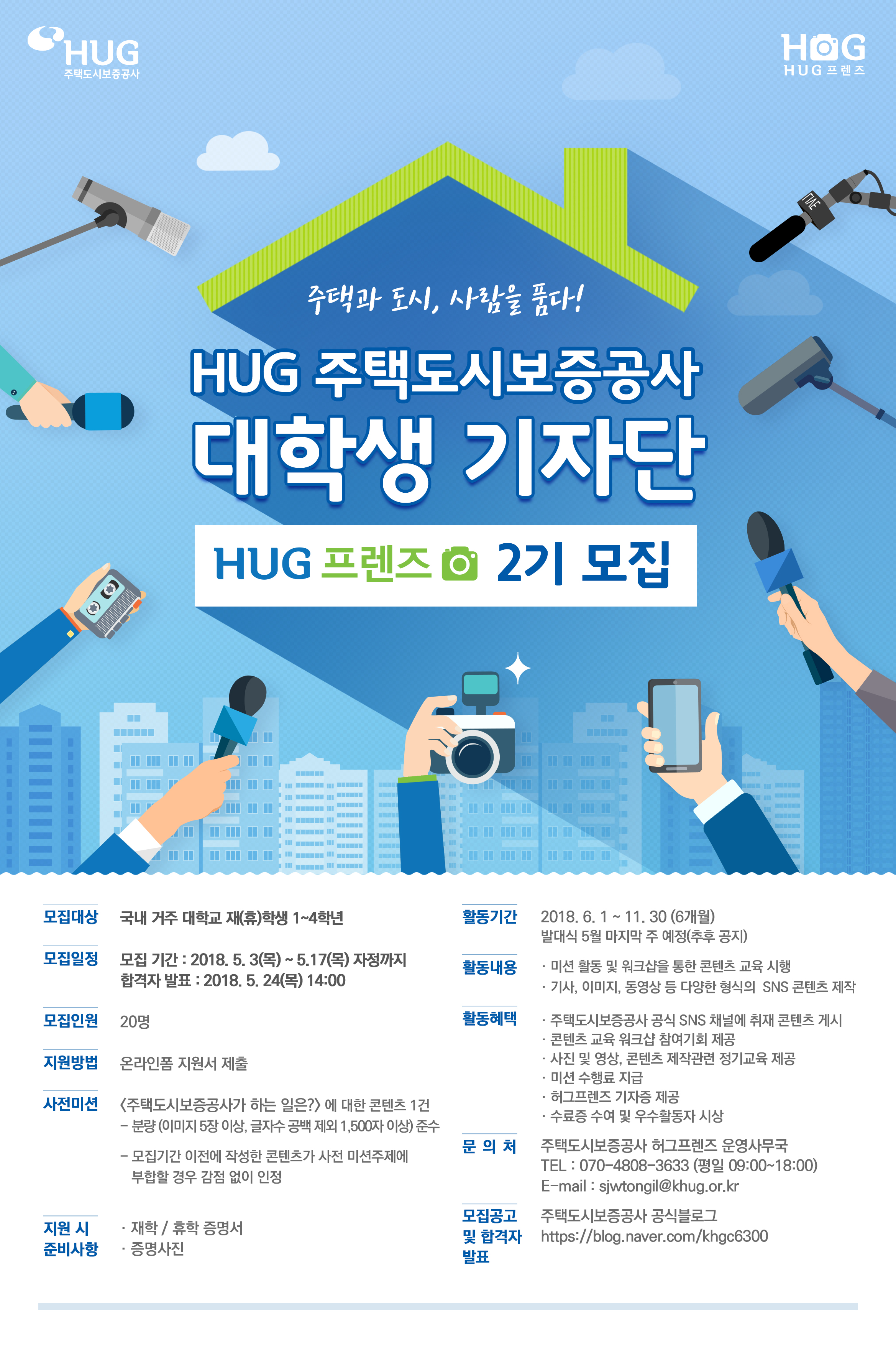 [공모전] 2018년도 주택도시보증공사(HUG) 대학생 기자단 '허그프렌즈 2기' 모집 안내