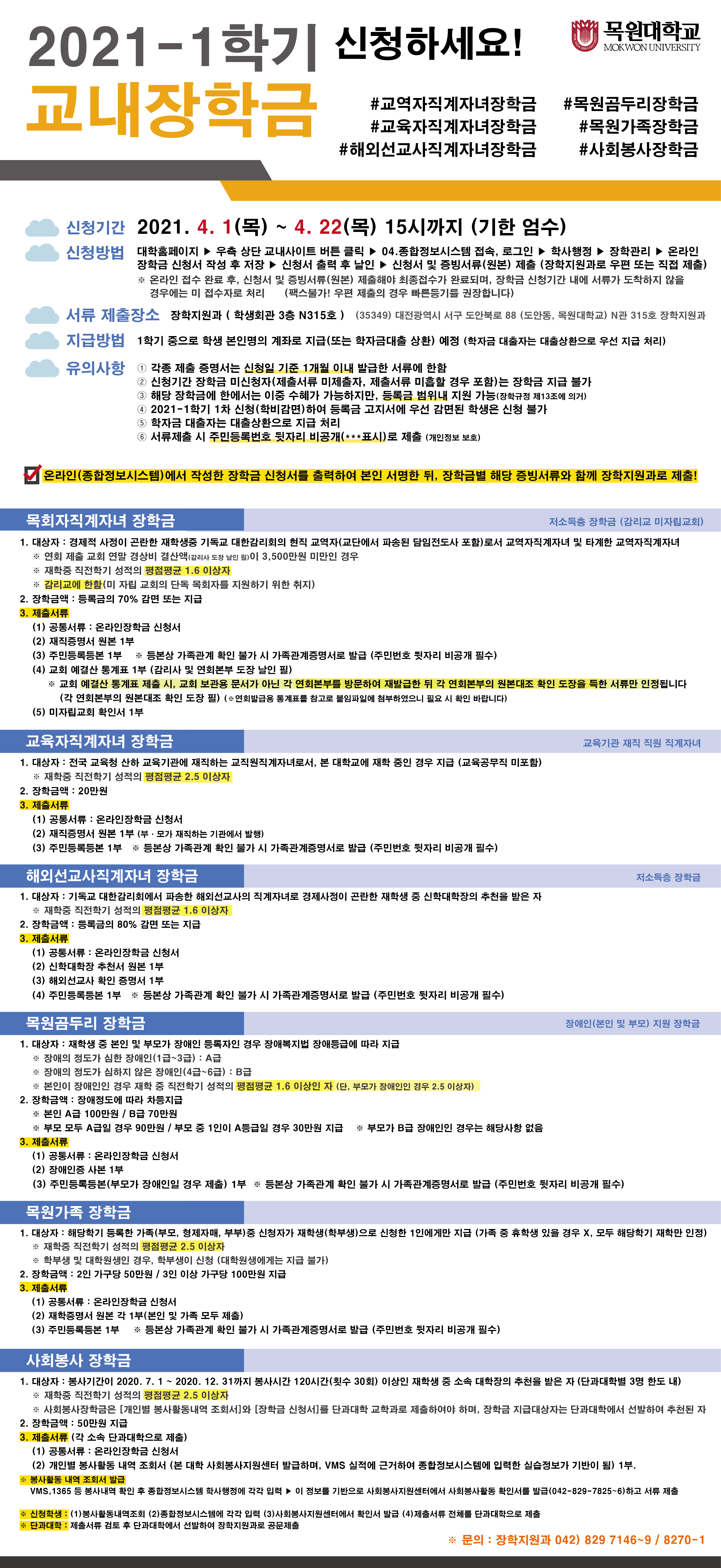 붙 임 1. 2021-1학기 교내장학금 2차 신청 안내 1부.