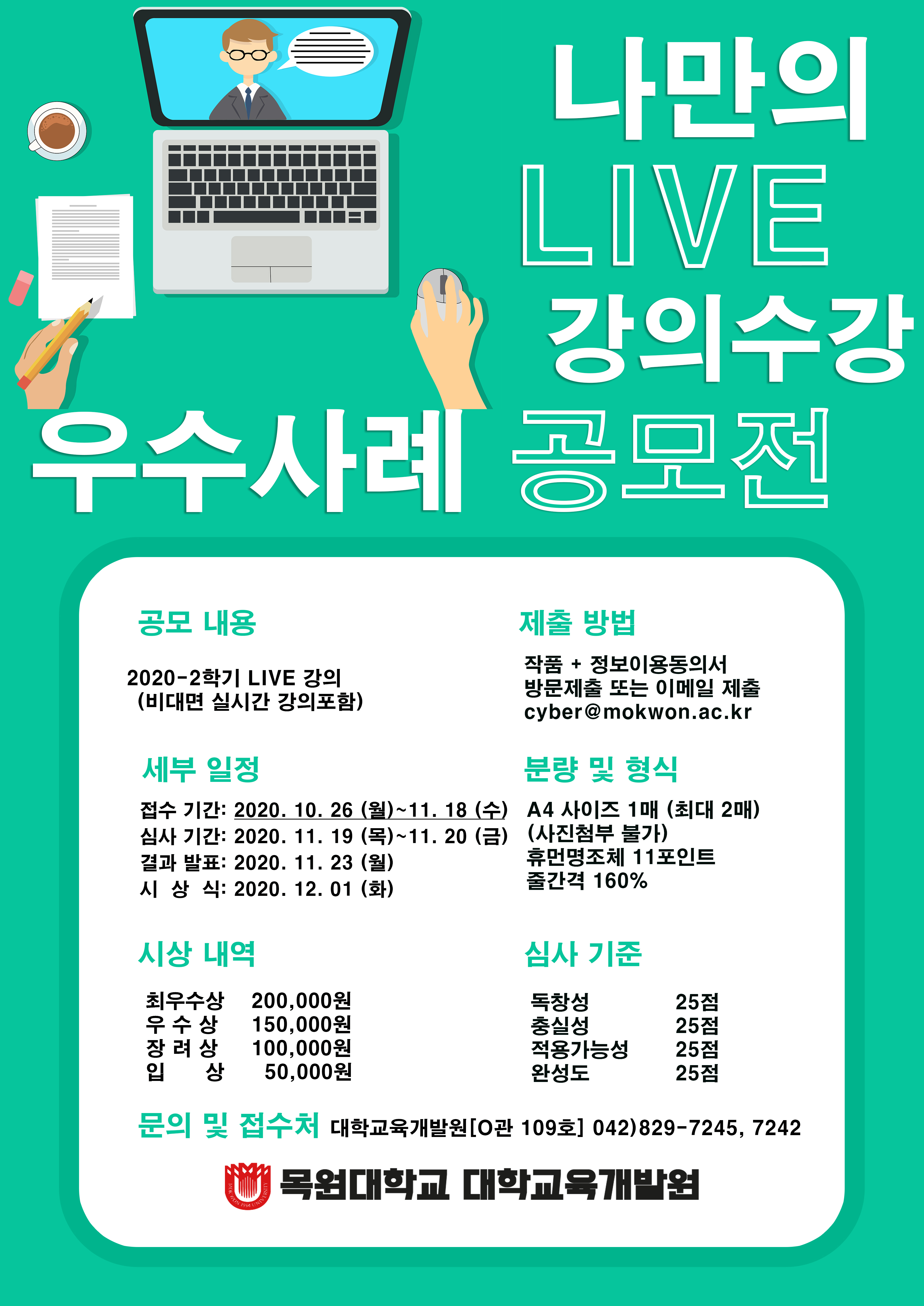 2) 접 수 방 법 : 신청서 + 작품 → 대학교육개발원 이메일 (cyber@mokwon.ac.kr) 제출