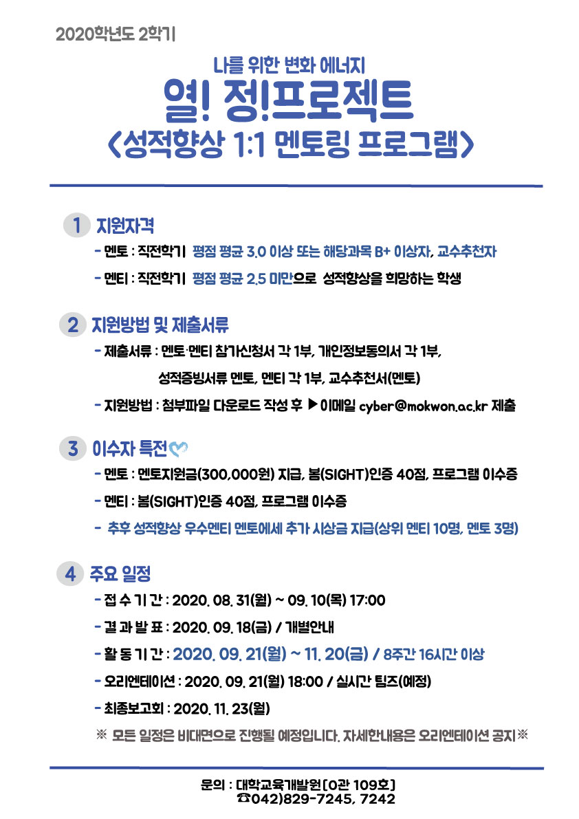 붙임 1. 2020-2학기 열!정! 성적향상 멘토링 모집 공고 안내문 1부.