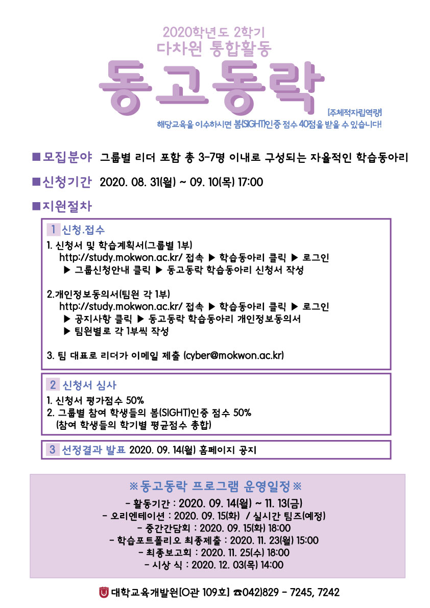 붙임 : 1. 2020-2학기 동고동락 모집 공고 안내문 1부.