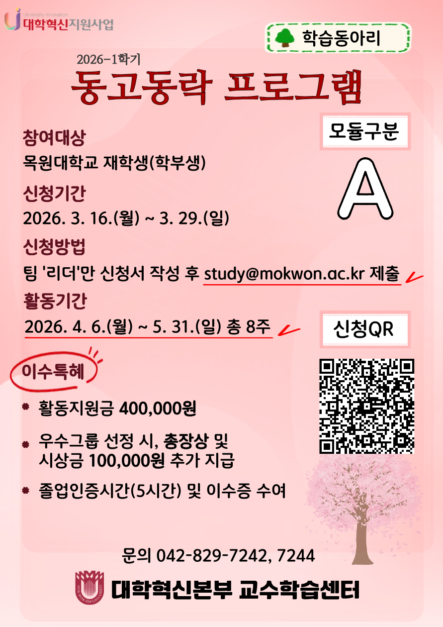 4. 신청방법: 신청서 작성 후 메일 (study@mokwon.ac.kr) 제출