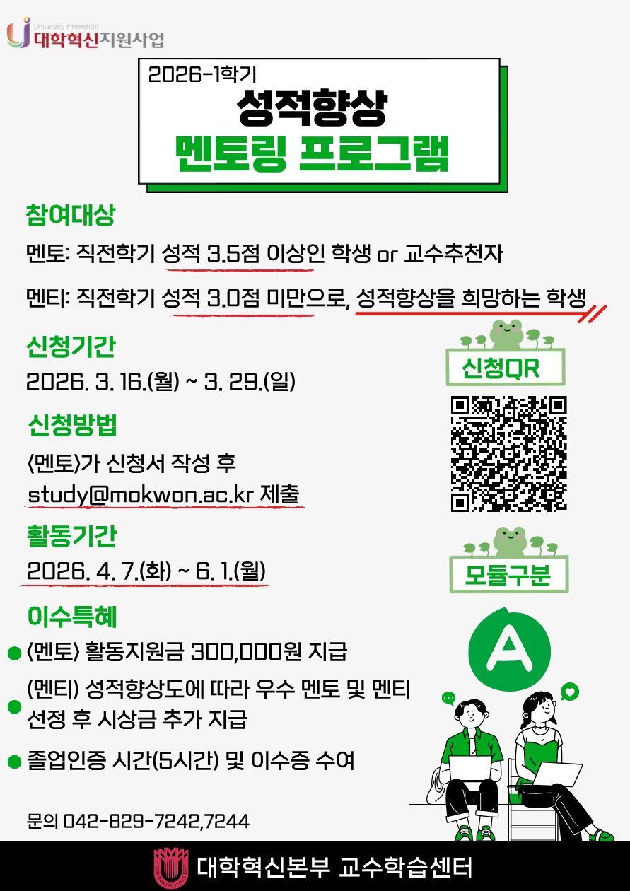 멘토: 직전학기 성적이 3.5점 이상이거나 교수 추천을 받은 학생