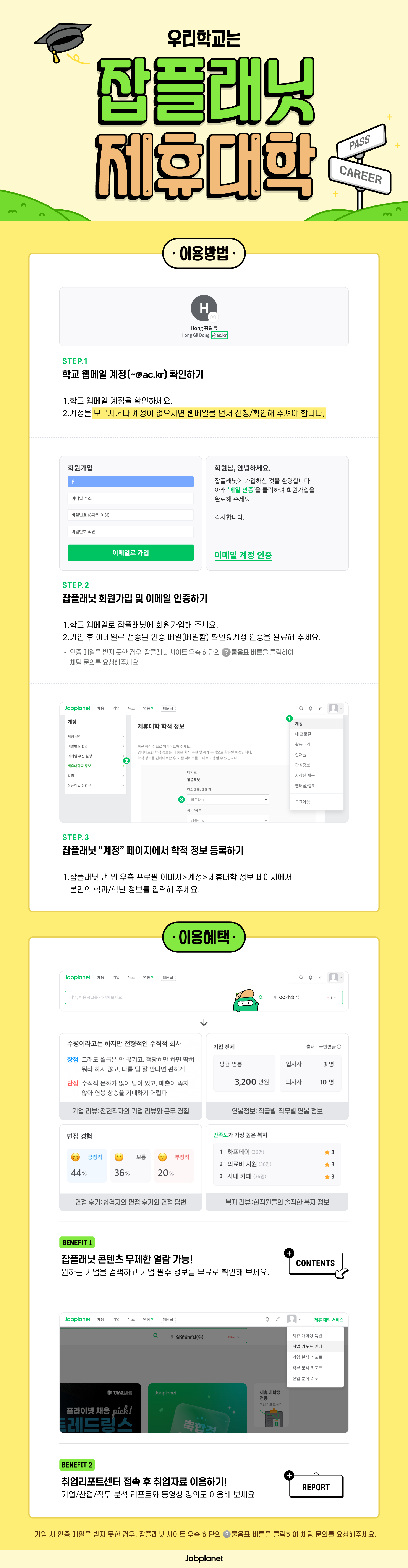 - 이용방법 : 경력개발시스템(http://image.mokwon.ac.kr) >> 로그인 >> 오른쪽 상단 "잡플래닛"배너 클릭 >> 개인회원으로 가입하되, 반드시 목원메일로 가입필수 >> 잡 플래닛 활용