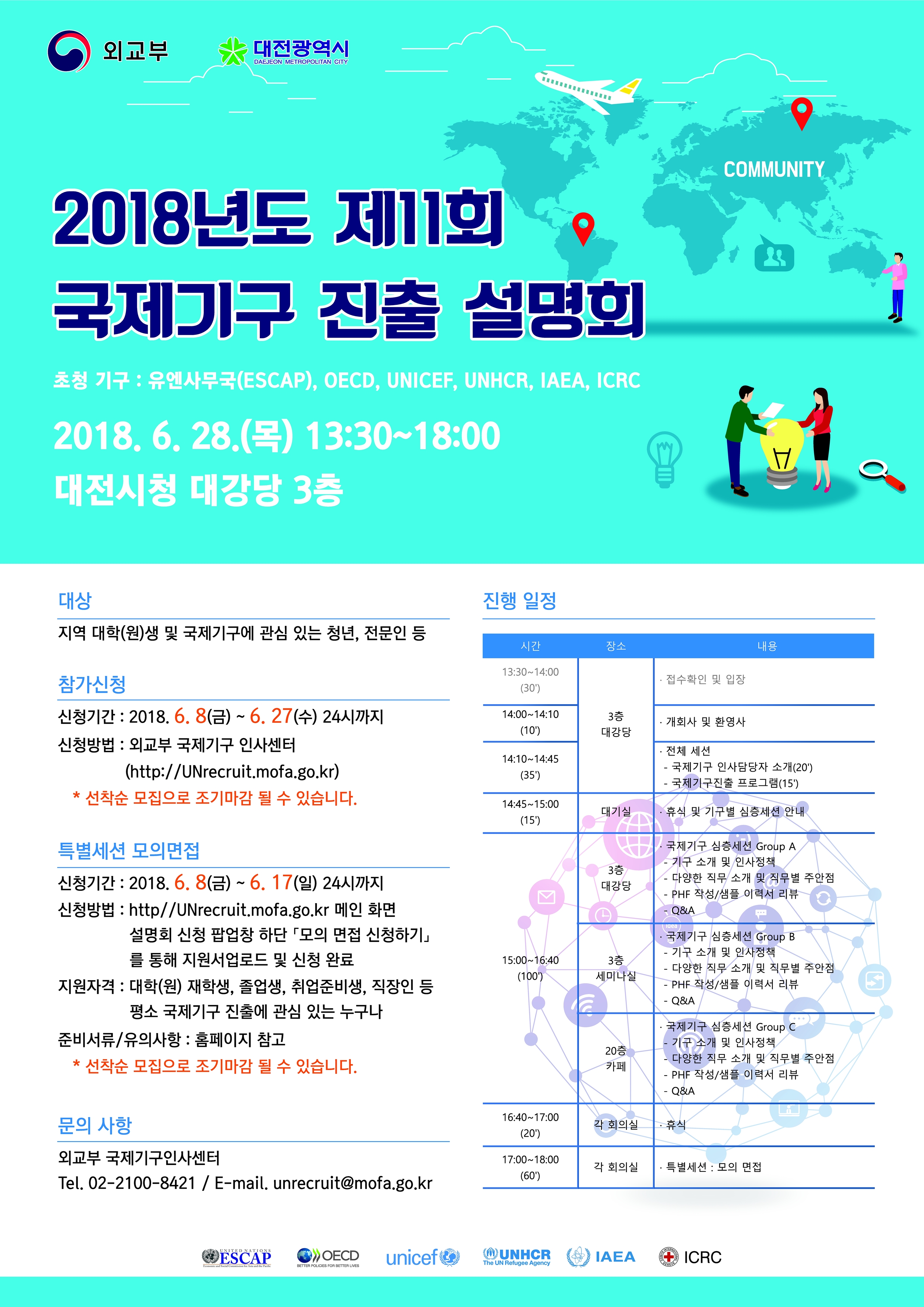 - 설명회 접수 기간(6. 8.(금) ~ 6. 27.(목) 자정) 내 외교부 국제기구 인사센터 홈페이지