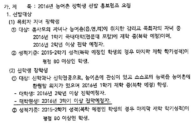 * 붙임 : 2016학년도 농어촌 장학생 선발 홍보