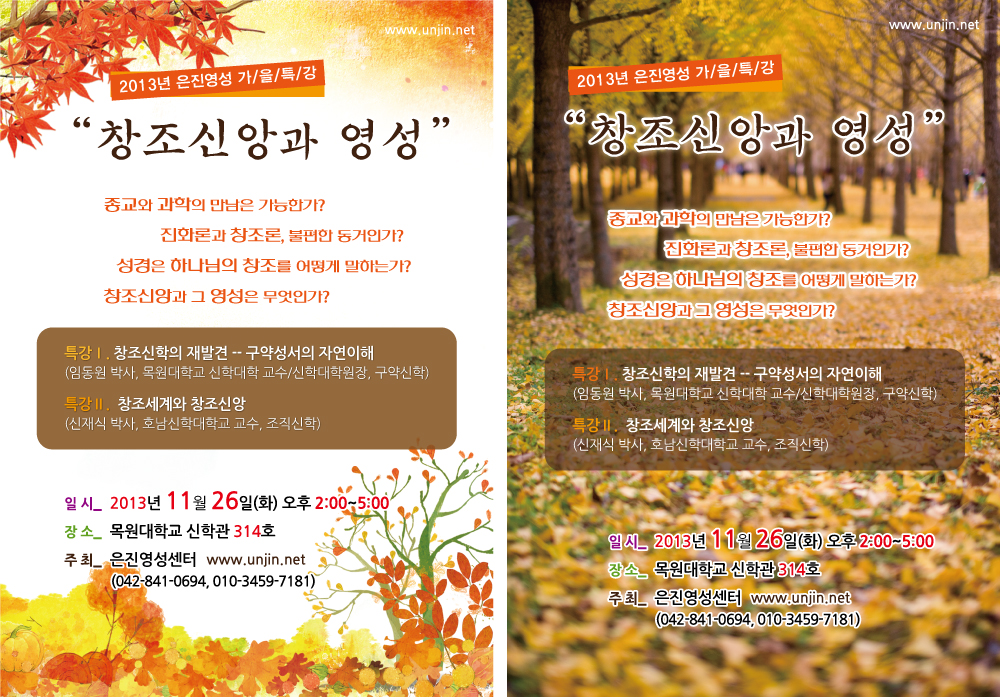 이러한 주제를 가지고 <창조신앙과 영성>이라는 가을특강이 개최됩니다.