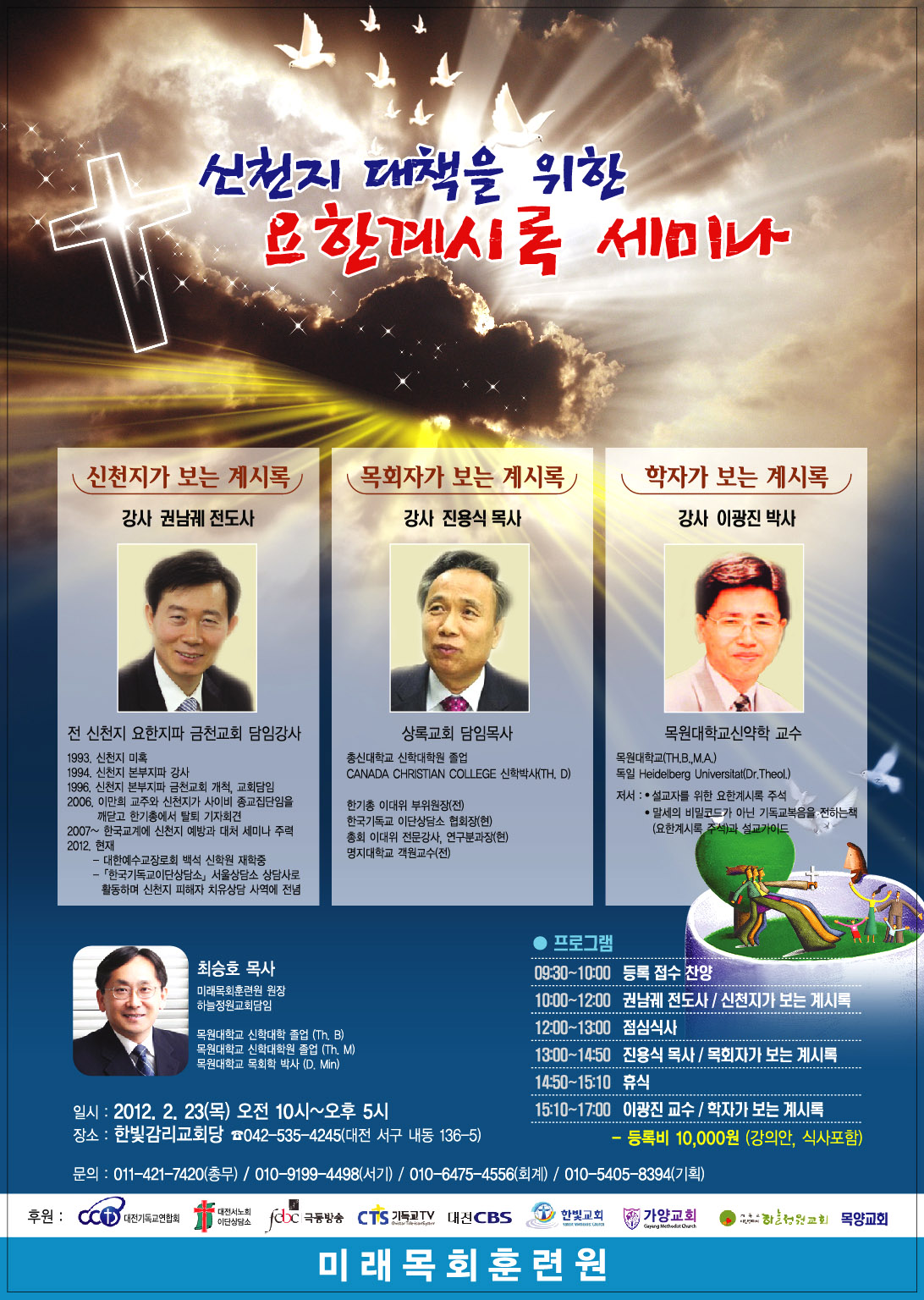 신천지대책을 위한 요한계시록 세미나에 많은 참석 바랍니다.