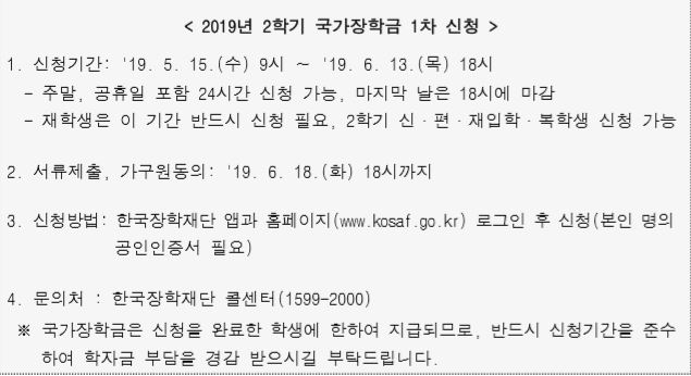 세계로 미래로 비상하는<2019년 2학기 국가장학금 1차 신청 안내문>