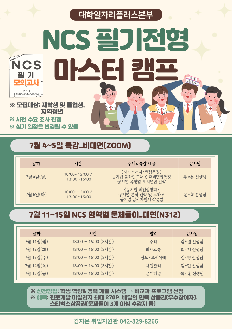 7. 문 의: 목원대학교 대학일자리플러스본부 김지은 취업지원관(042-829-8266)