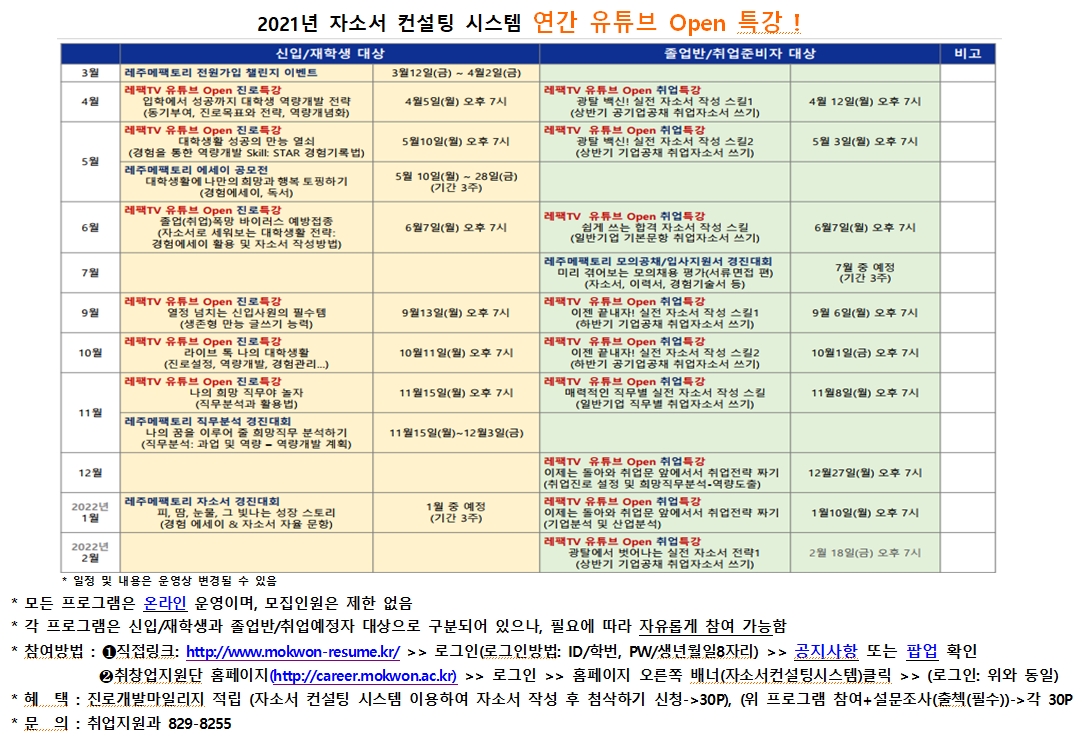 나. 취업지원과-53호(2021.03.05.) 「2021년 자소서 컨설팅 시스템 연간 유튜브 Open 특 강 운영 품의」
