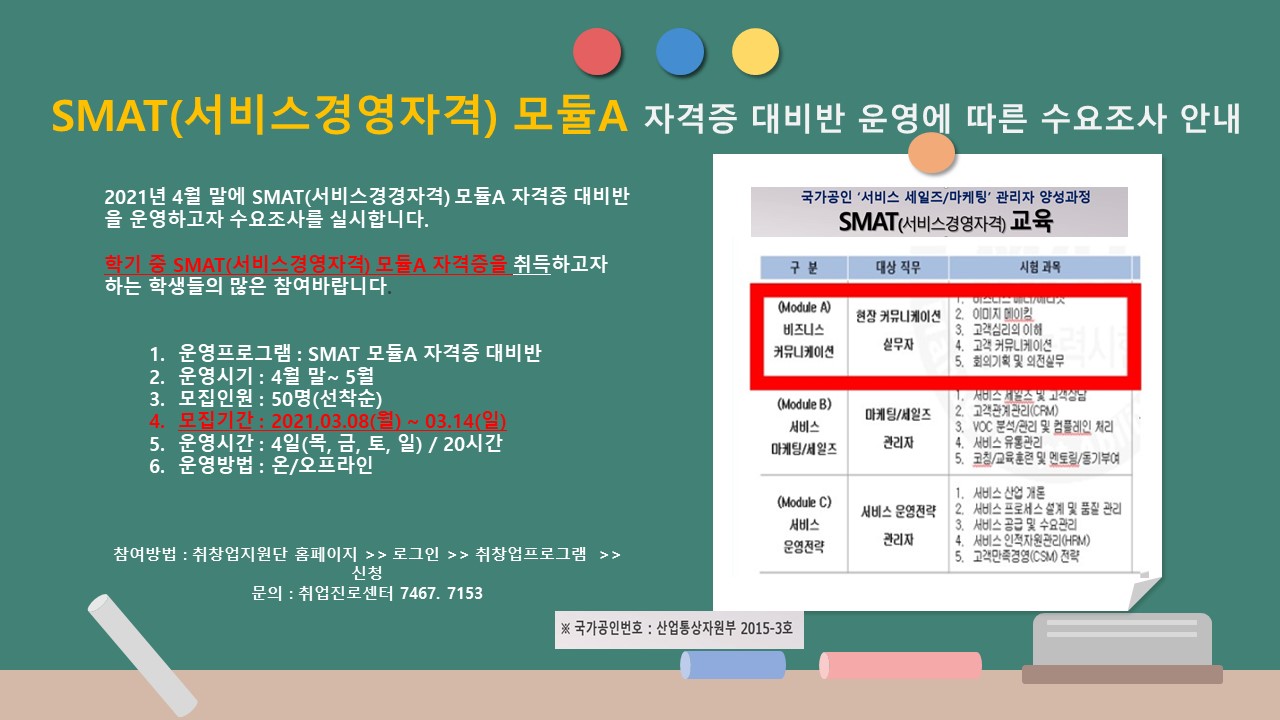 2. 자격증 대비반 수요조사 포스터 SMAT 모듈 A 1부. 끝