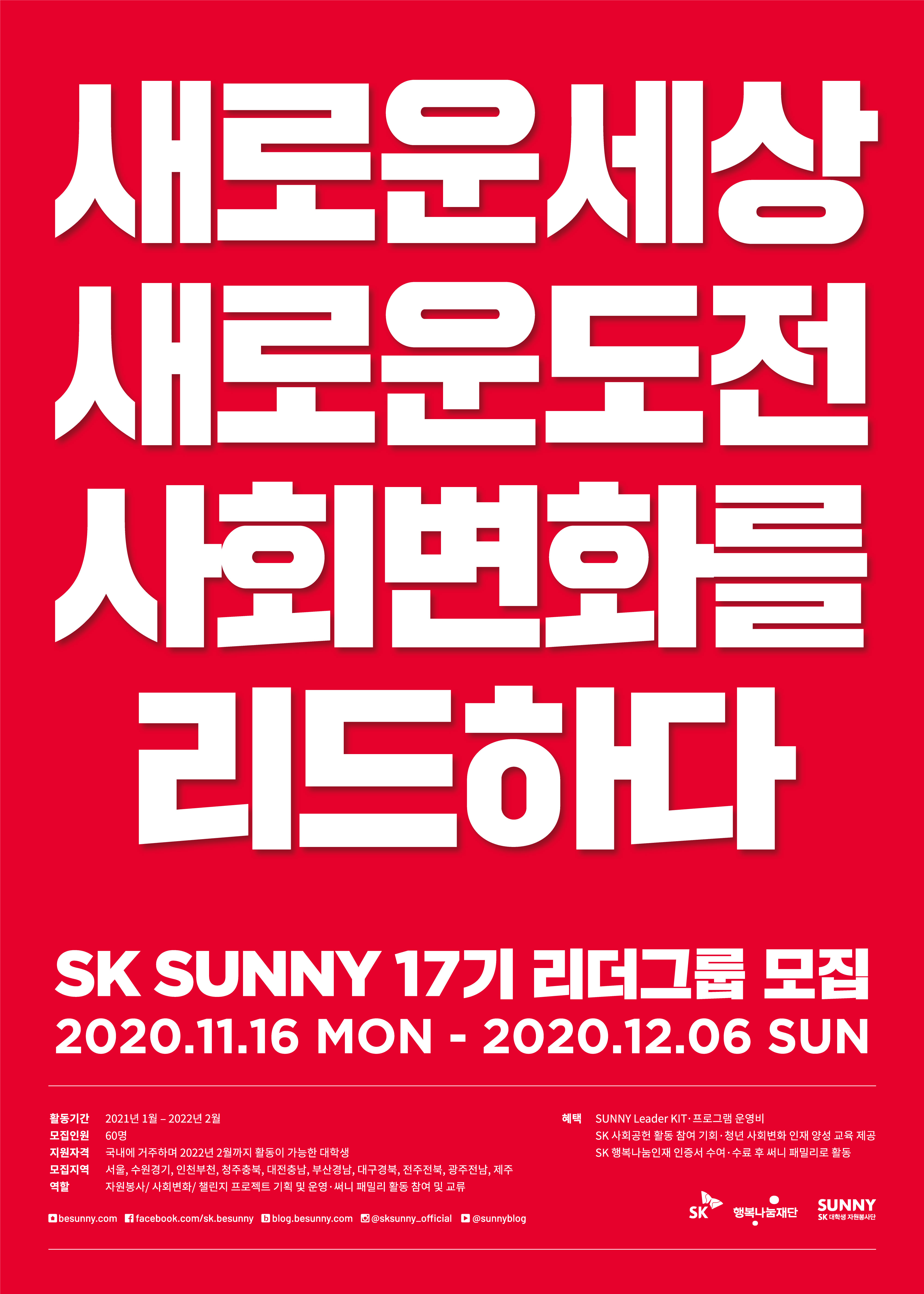 세계최고의 웹툰.애니메이션.게임콘텐츠 전문가를 꿈꾼다- 내 용 : SK 자원봉사단 SUNNY 17기 리더그룹 모집