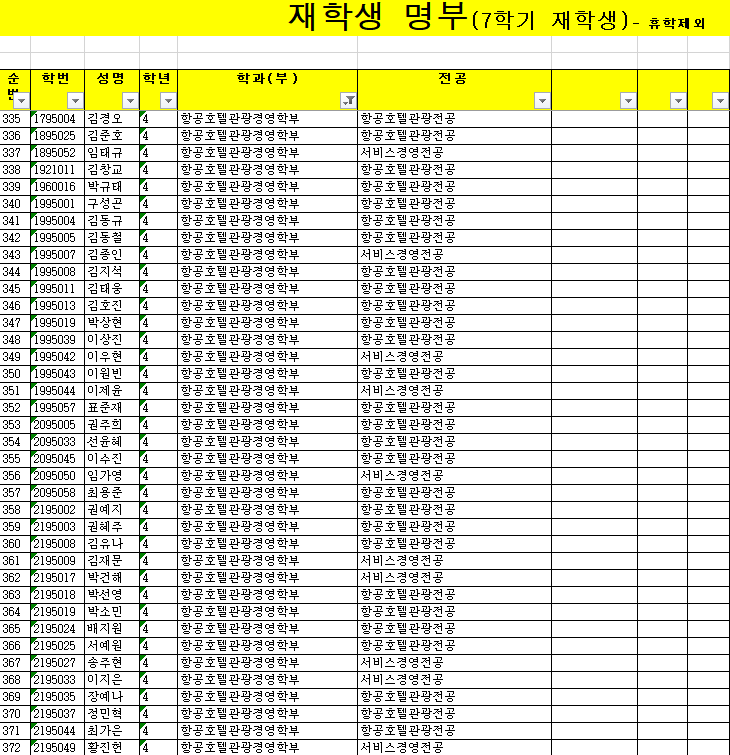 항공호텔관광전공:OA실무, 관광학원론, 호텔경영론, 전공영어