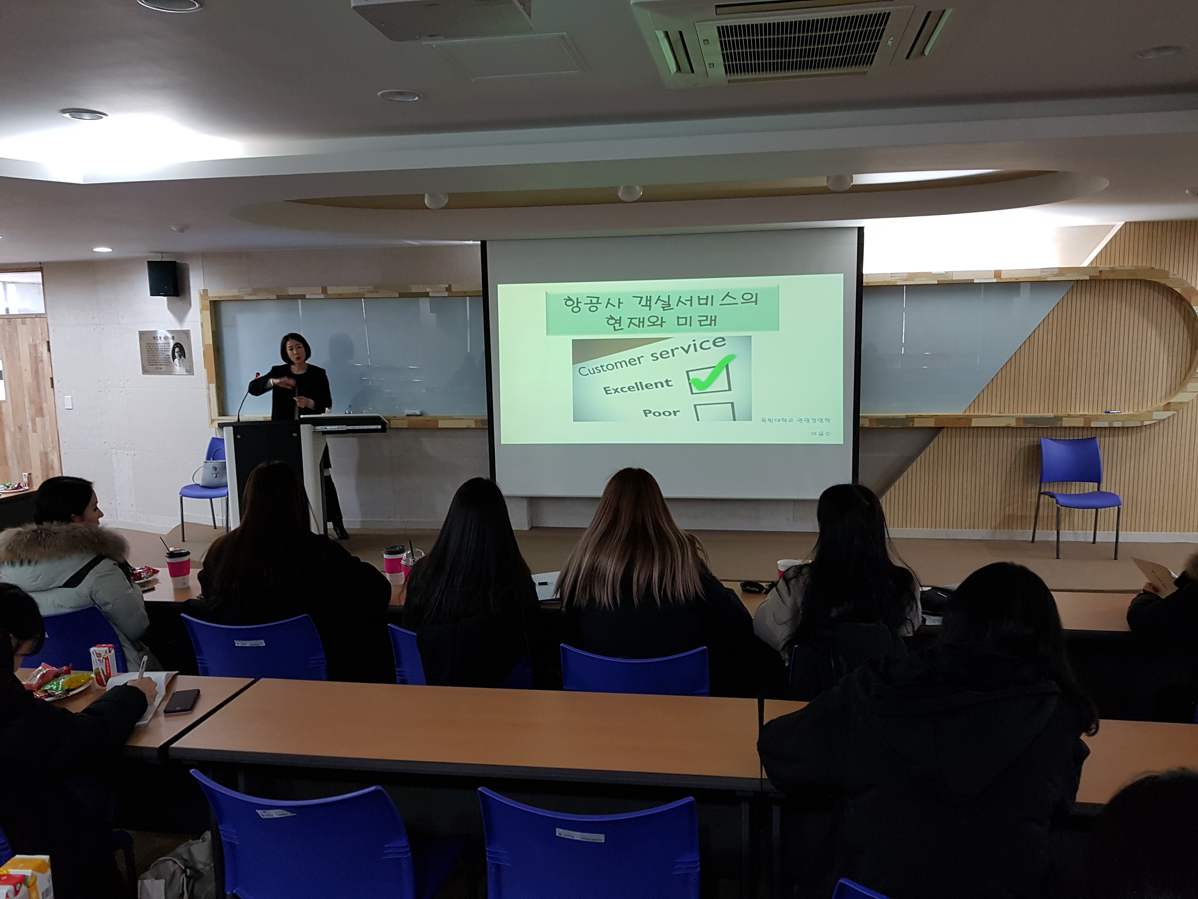 서비스경영학부 취업역량강화 전공 수업의 일환으로 국적 저가항공사 객실 사무장님께서 "항공사 객실서비스의 현재와