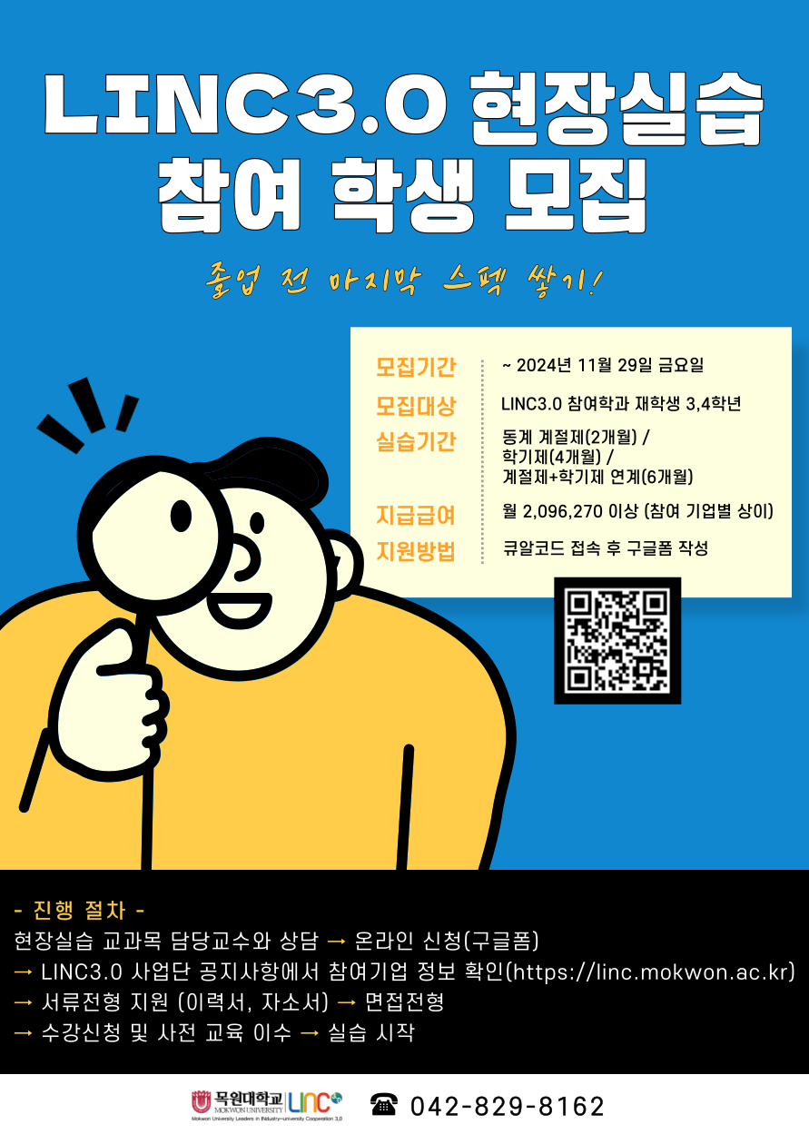2. LINC 3.0 현장실습 프로그램 학생 모집 포스터. 끝.