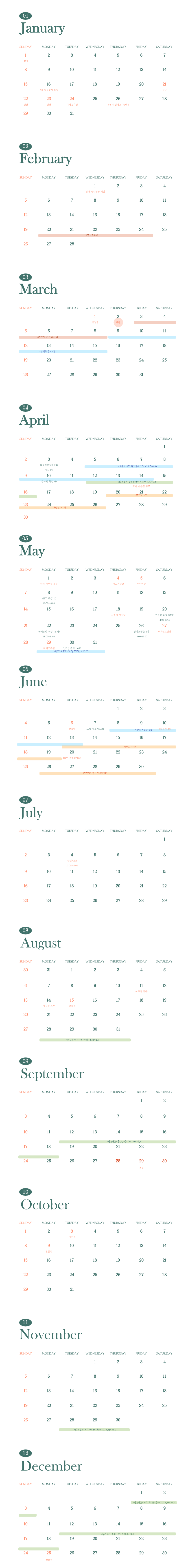 본 학사 일정은 미술교육과 학과의 일정이므로 자세한 전체 학사 일정은 학교 홈페이지를 참고하시기 바랍니다.