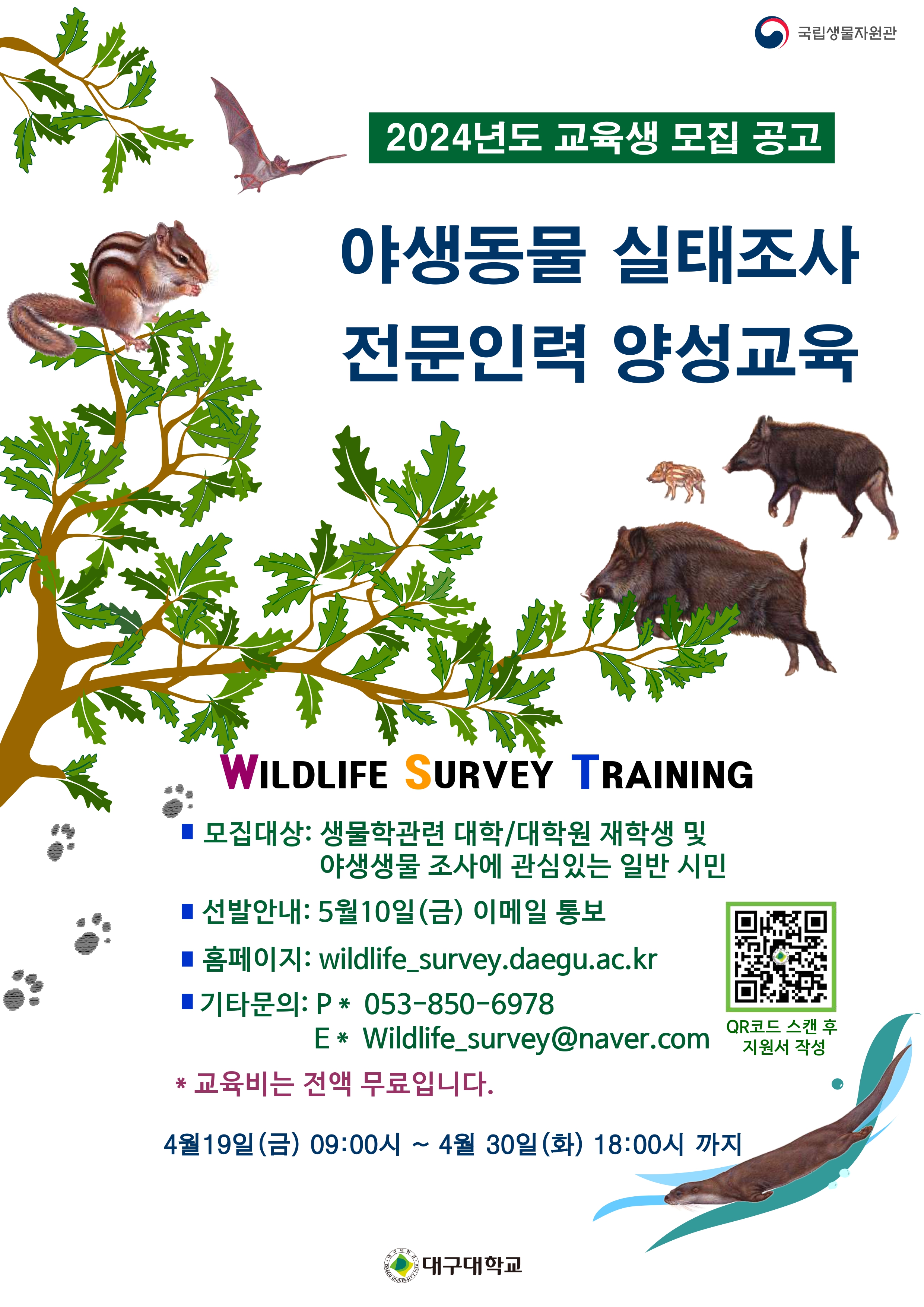 대구대학교에서「2024년 야생동물 실태조사 전문인력 양성 프로그램」을 진행합니다.