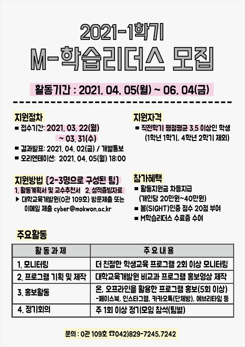나. 사업취지 : M-학습리더는 타의 모범이 되고, 학습력 향상 프로그램 홍보를 통해 재학생의 프로그램 참여를 활성화함.