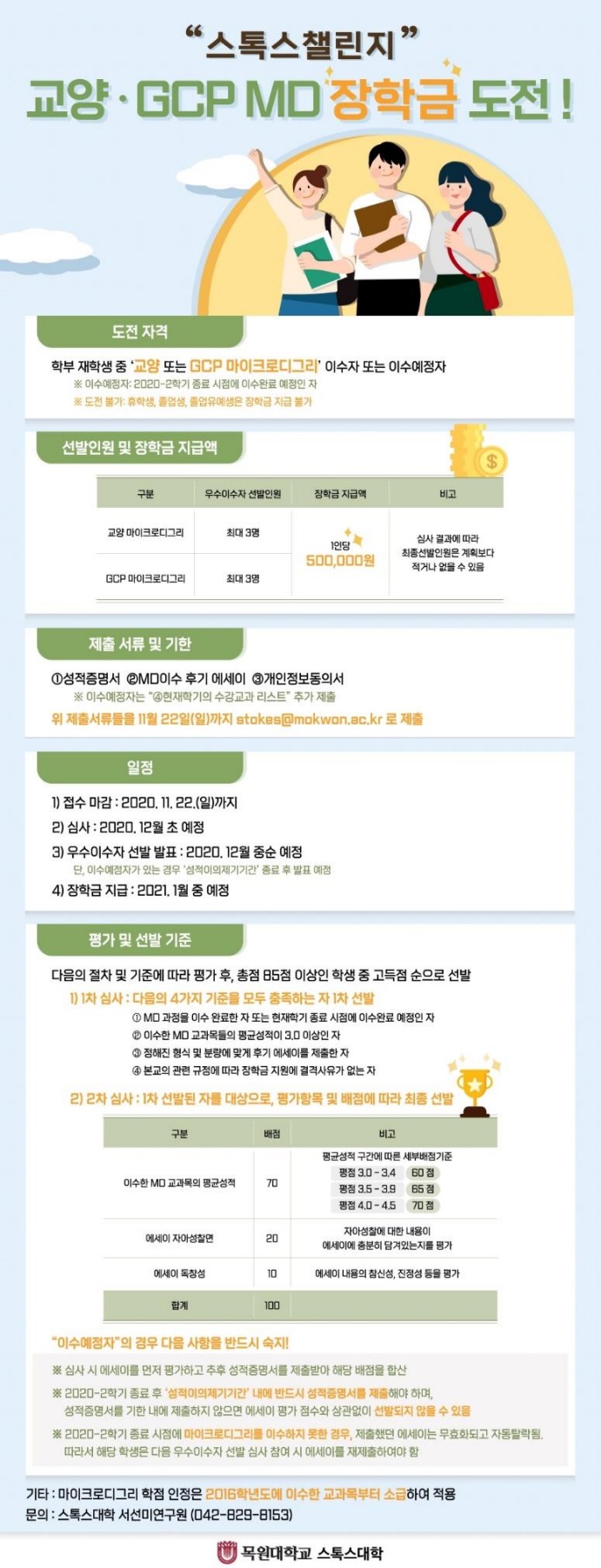 6. 기한 및 방법: 2020.11.22.(일)까지 stokes@mokwon.ac.kr로 제출
