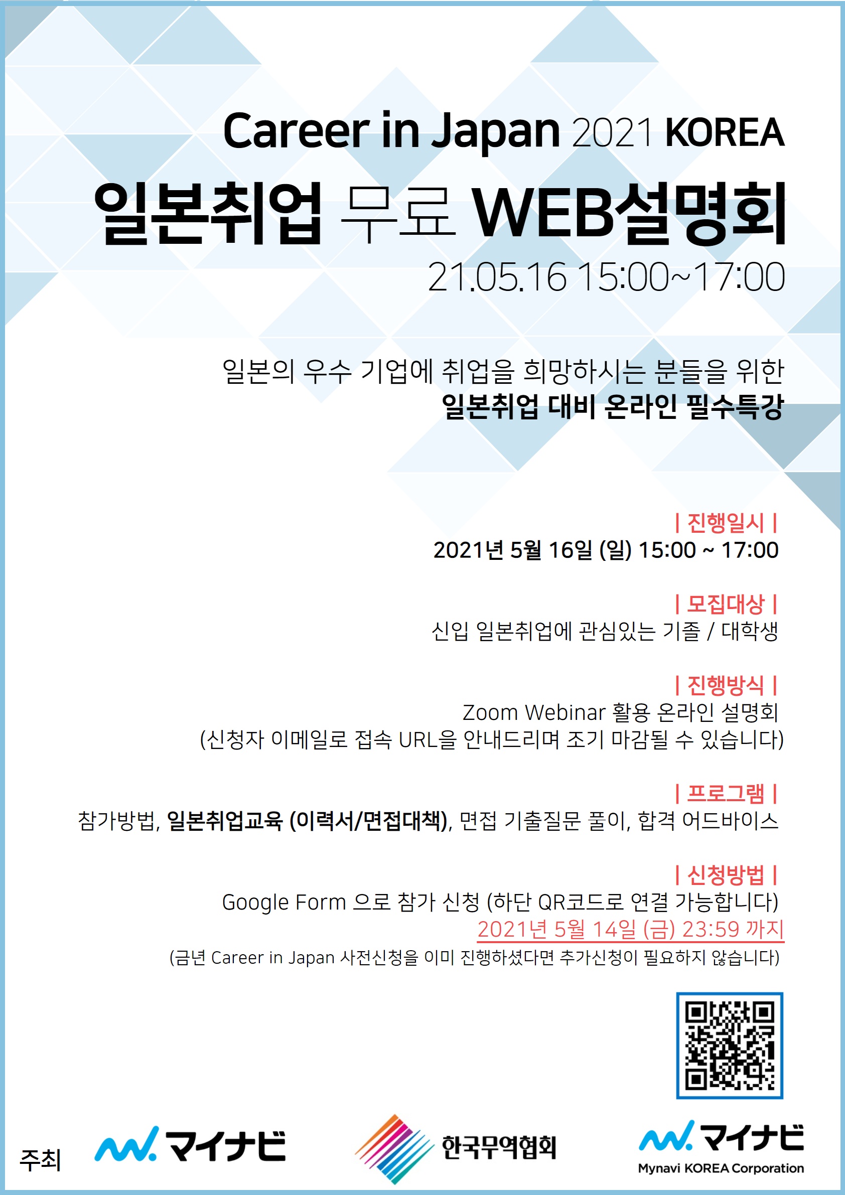 예술과 영원성을 내포한 인간을 위한 도자디자인학과㈜ 마이나비코리아에서는 청년 실업 문제 상황에서 대한민국 청년들의 원활한 해외 취업 지원을 위하여 한국무역협회와 공동운영하는 Career in japan 2021 KOREA 일본취업 무료 WEP 설명회를 개최합니다.