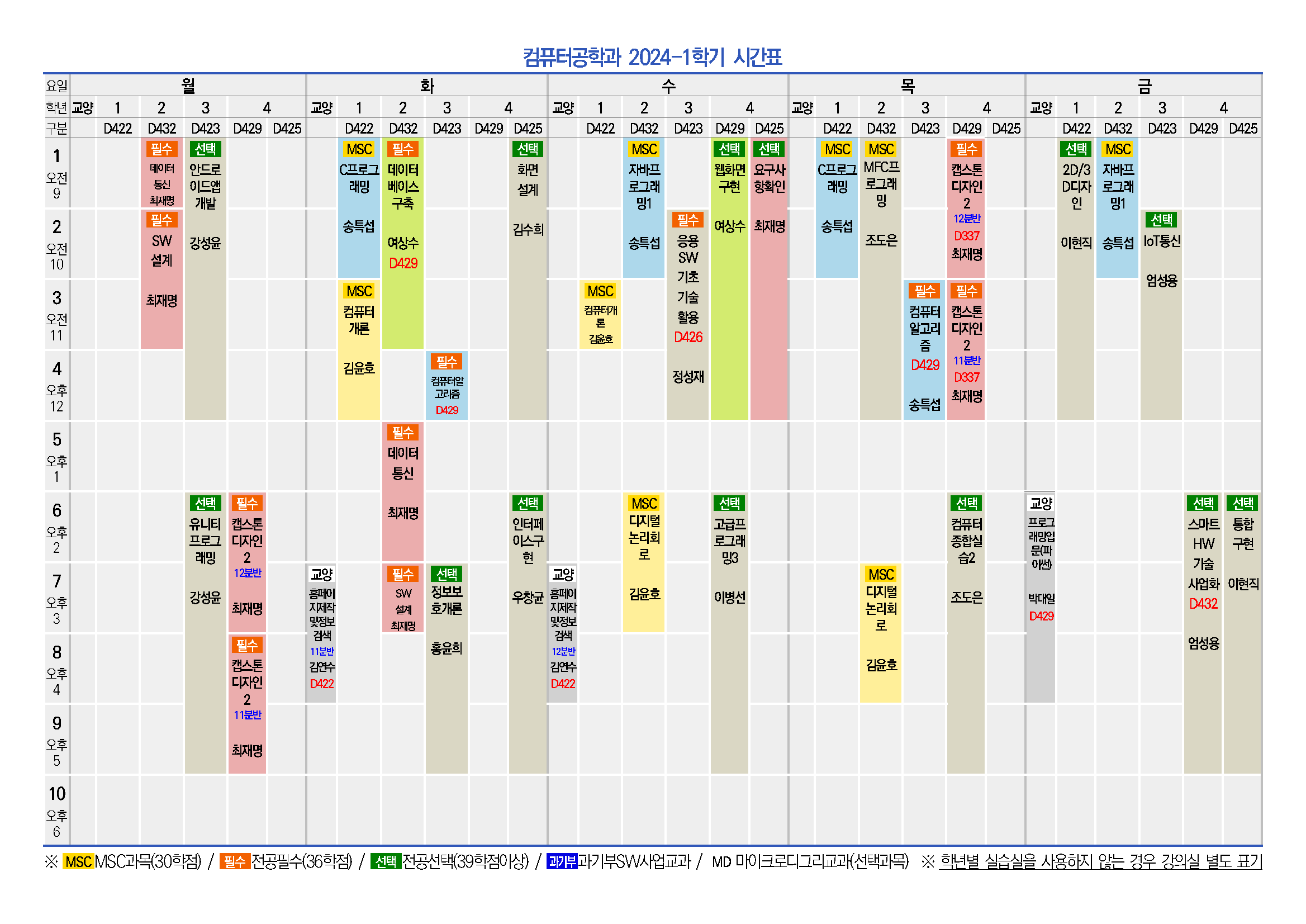 2024학년도 1학기 컴퓨터공학과 시간표입니다.