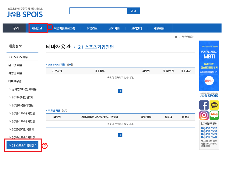 ※ 잡스포이즈 시스템 문의 [스포츠산업 일자리지원센터] 02-410-1567∼1570)