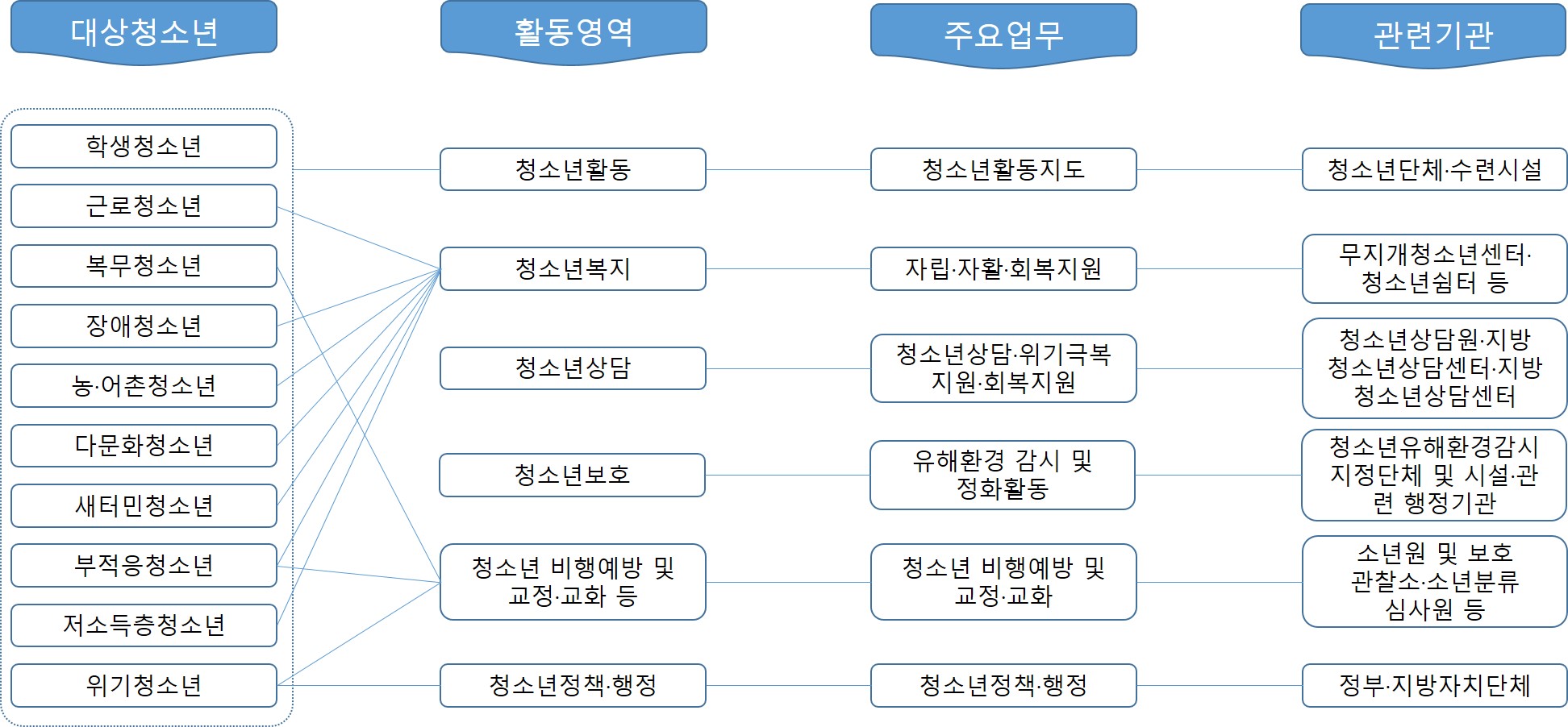 ㅇ 청소년활동은 우리나라 청소년분야의 형성과 발전의 역사를 통해서 그 성격을 특징짓는 가장 핵심적인 것으로 자리매김함.