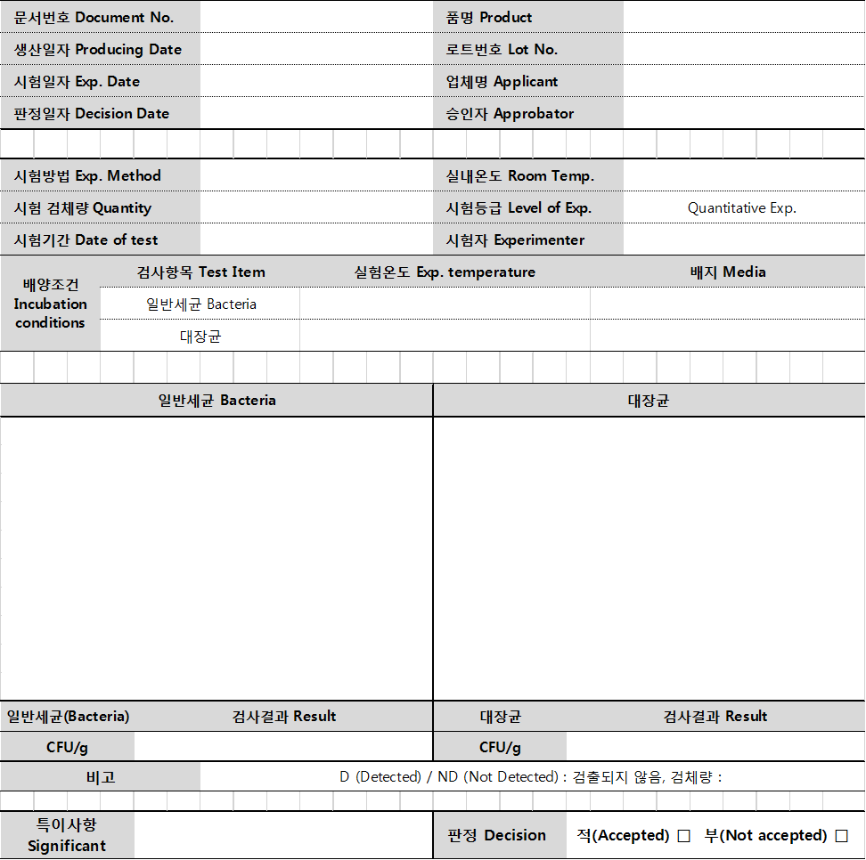 미생물 시험 성적서