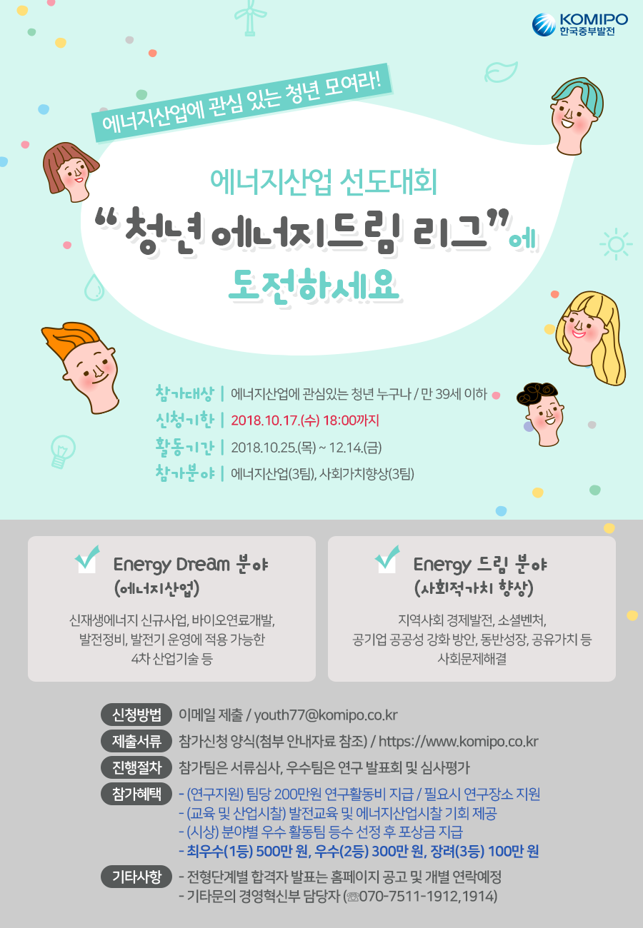 청년과 하나되어 새롭게 성장하는 에너지산업 선도대회‘청년 에너지드림 리그’모집 공고 |
