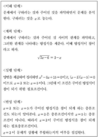 3. 다음은 폴리아(G. Polya)의 수학 문제해결 교육론에 근거해 어떤 문제를 해결하는 과정의 일부이다.