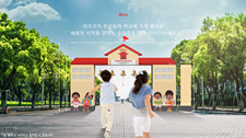 건강해진 아프리카 친구들이 학교에 가게 됐어요. 배움의 시작을 알리는 수업종을 치며 지나가보세요.  |